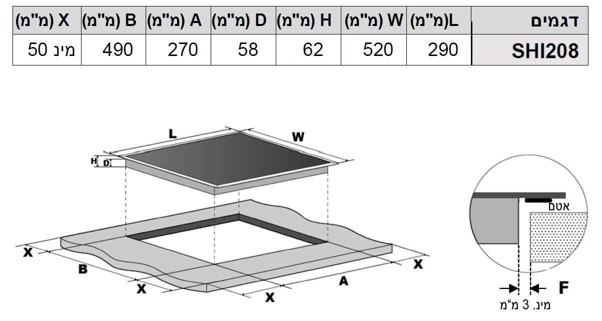 • אזור בישול 1 עם מאיץ/בלי מאיץ: W1,800/2,200
